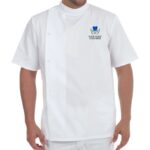 ✔ Modern Design – Half sleeves, unisex fit, standing neck collar, and button-front closure for a sleek, professional appearance.